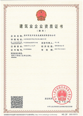蘇州市吳中區(qū)東吳建筑有限責(zé)任公司,具有房屋建筑施工總承包一級(jí)、裝飾裝修工程設(shè)計(jì)與施工二級(jí)一體化資質(zhì)、機(jī)電設(shè)備安裝三級(jí)資質(zhì)、市政公用總承包三級(jí)資質(zhì)企業(yè),通過(guò)ISO9001質(zhì)量管理體系認(rèn)證、資信等級(jí)AAA級(jí)。